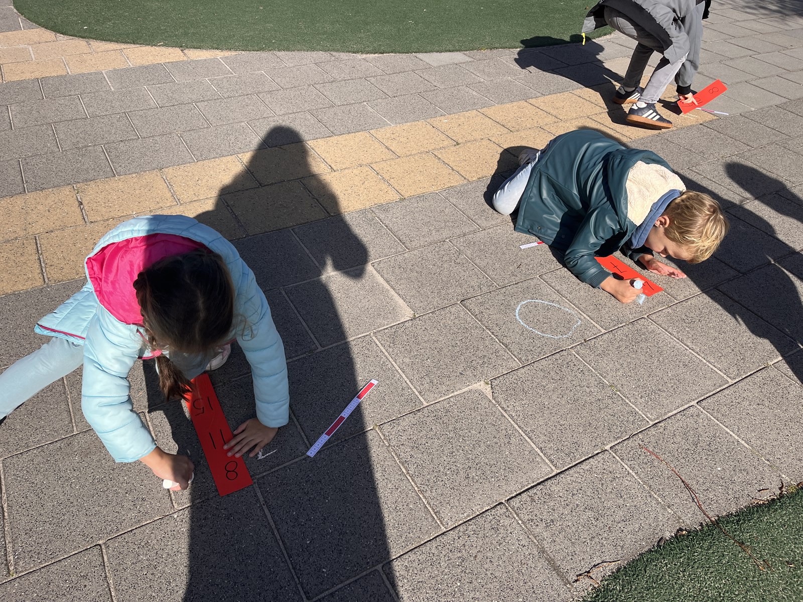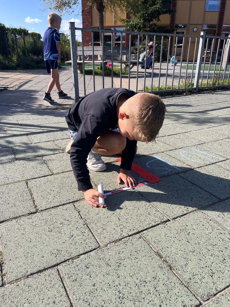 Bij rekenen gingen we de telrij t/m 20 herhalen en de buurgetallen t/m 20. Hiervoor gingen wij naar buiten.